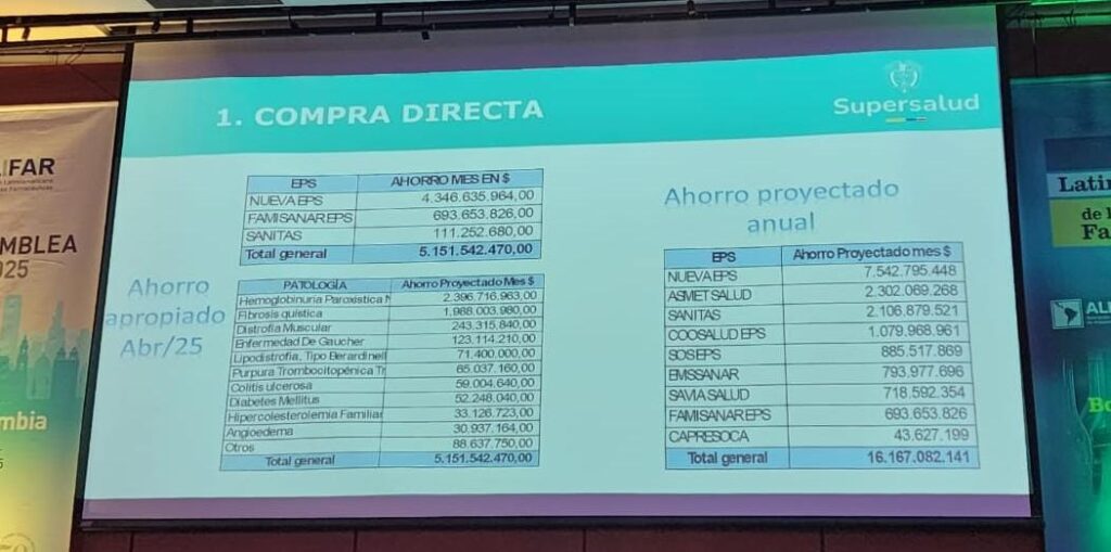 Por otra parte, el Superintendente destacó que esta estrategia no solo garantiza un flujo financiero más transparente y eficiente, sino que tiene el potencial de generar ahorros históricos para el sistema de salud colombiano. Se proyectan beneficios significativos en la gestión del gasto farmacéutico, especialmente al sumar medicamentos de alto costo y bajo volumen con aquellos de alto volumen y bajo costo.
